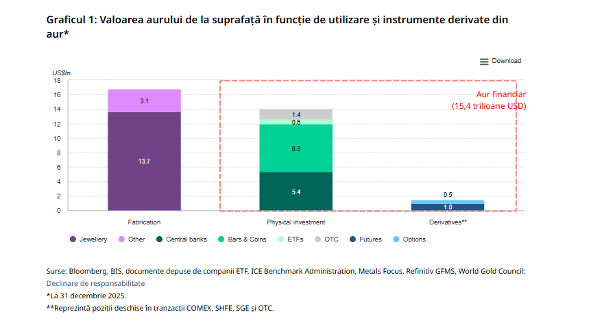 În ciuda dimensiunii pieței de 31 de trilioane de dolari, aurul reprezintă doar 3% din activele investibile globale. World Gold Council subliniază că această „sub-alocare” reprezintă o oportunitate.