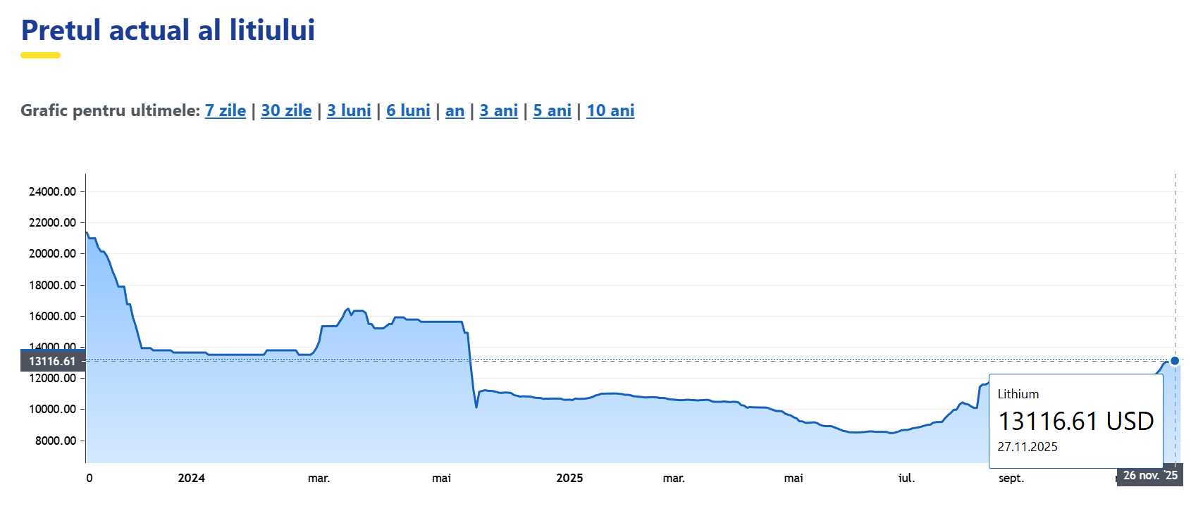 Rezultatul? În 2023-2024 am asistat la un surplus temporar de litiu pe piață, pe măsură ce noile proiecte au început să livreze. După ce a atins un vârf la început de 2022, prețul carbonatului de litiu a început să coboare.